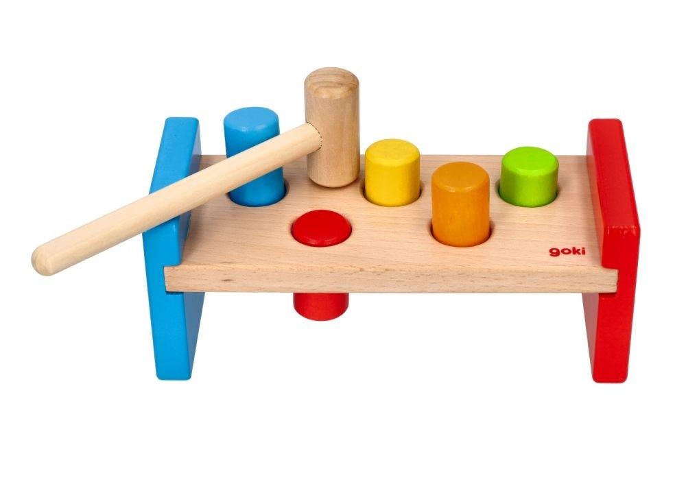 Drewniana ławeczka do wbijania kołków z młotkiem marki Goki to klasyczna zabawka, która rozwija koordynację ruchową i zdolności manualne u dzieci. Ławeczka ma wymiary 21 x 8,8 x 8,5 cm i wykonana jest z drewna. W zestawie znajduje się 5 kolorowych kołków do wbijania. Ta interaktywna zabawka zachęca dzieci do precyzyjnego uderzania młotkiem, co nie tylko rozwija ich zdolności motoryczne, ale także uczy cierpliwości i koncentracji. To doskonała zabawka, która zapewnia godziny kreatywnej i edukacyjnej zabawy.