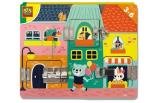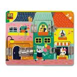 Zachęcające, kolorowe ilustracje na drewnianej planszy sprawiają, że zabawa i odkrywanie tworzą przestrzeń dla wyobraźni.