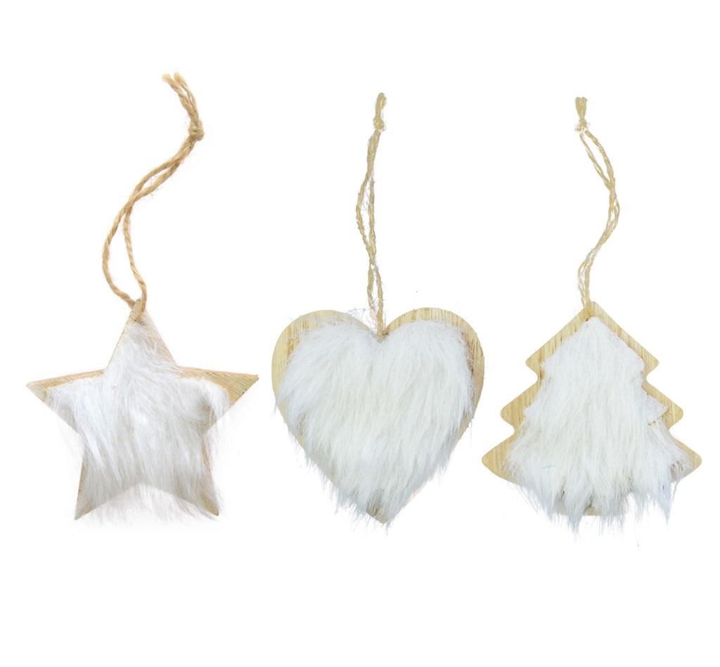 Drewniana zawieszka z futerkiem. 1 sztuka. Rozmiar ok. 7,5 - 8 cm
