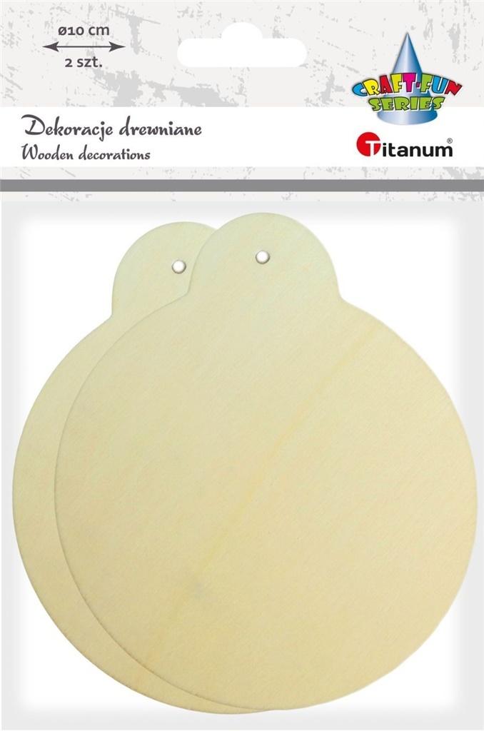Bombka drewniana. Sklejka o grubości 25 mm. Średnica 10 cm. Otwór 3 mm. Wysokość 11,4 cm. 2 szt. 2 szt. kolor: naturalna