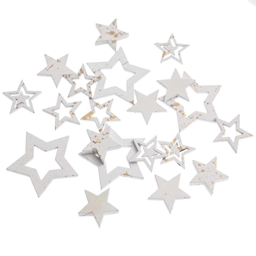Opakowanie Drewniane gwiazdki białe złocone 20szt
