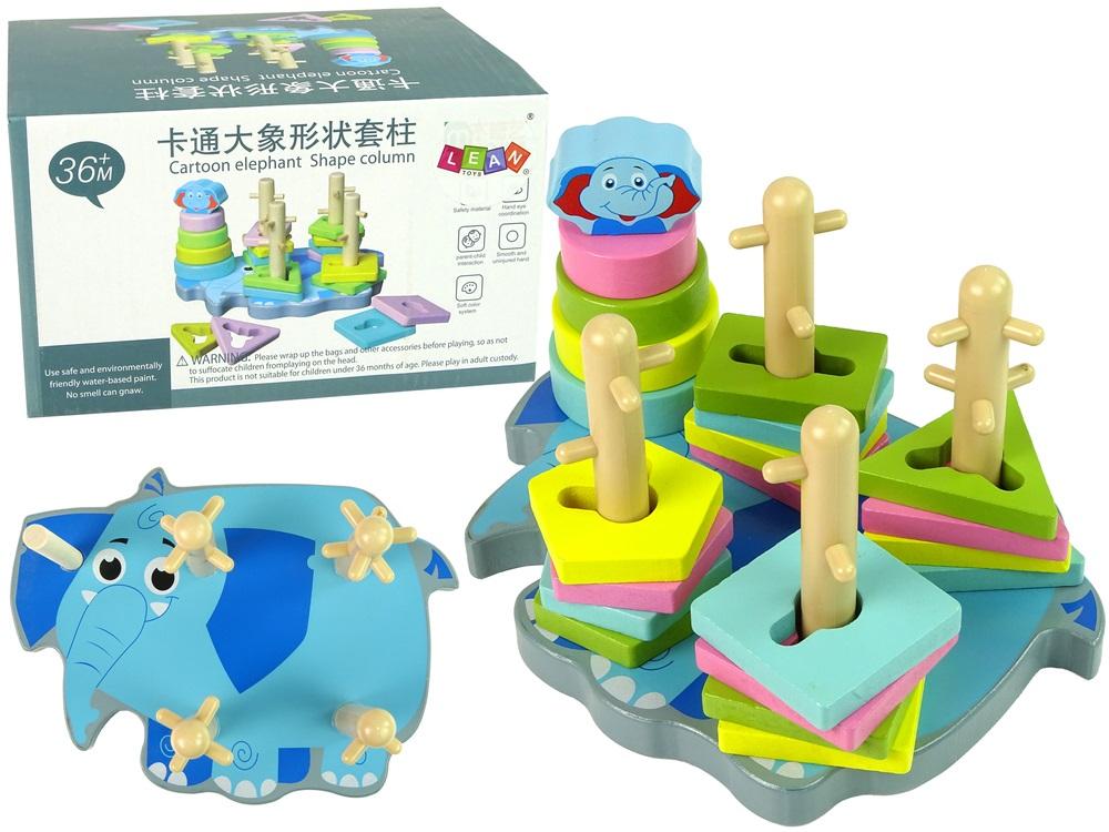 Zestaw składa się z podstawki w kształcie słonika z kołkami ustawionymi w różnych odległościach. Zabawa polega na włożeniu klocka w odpowiednie miejsce, wymaga to nie lada precyzji oraz zdolności manualnych. Twoje dziecko ćwiczy wyobrażenie przestrzenne, ale i kreatywność. Największym wyzwaniem jest dobranie odpowiedniego kształtu.