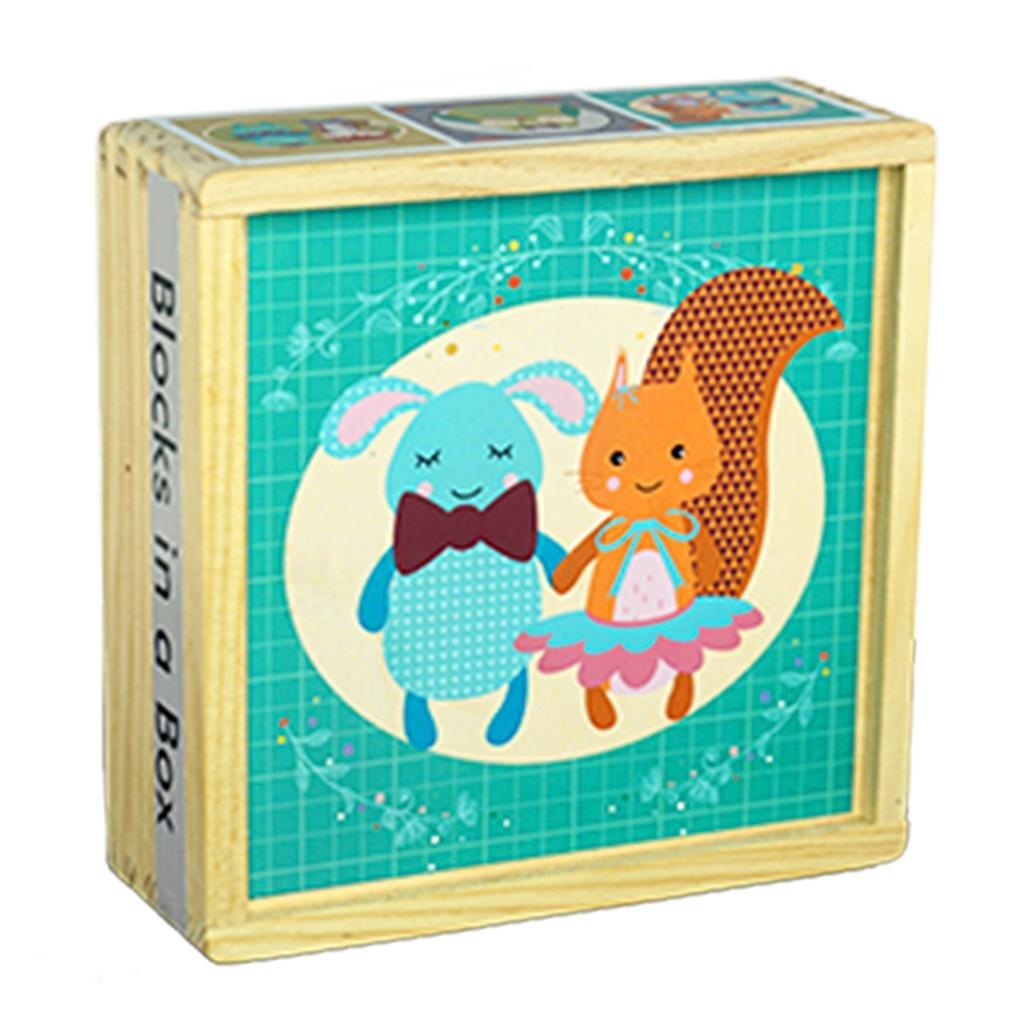 • Zestaw zawiera 9 drewnianych sześciennych klocków.