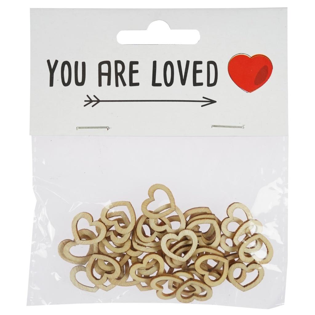 Drewniane konfetti - serduszka. Wielkość pojedyńczego serduszka ok. 1,5cm. 48 sztuk w opakowaniu.