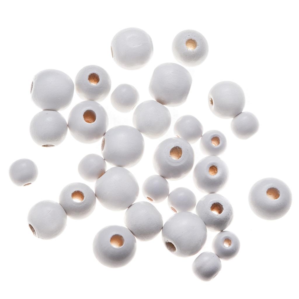 Opakowanie Drewniane koraliki, kulki białe 30szt