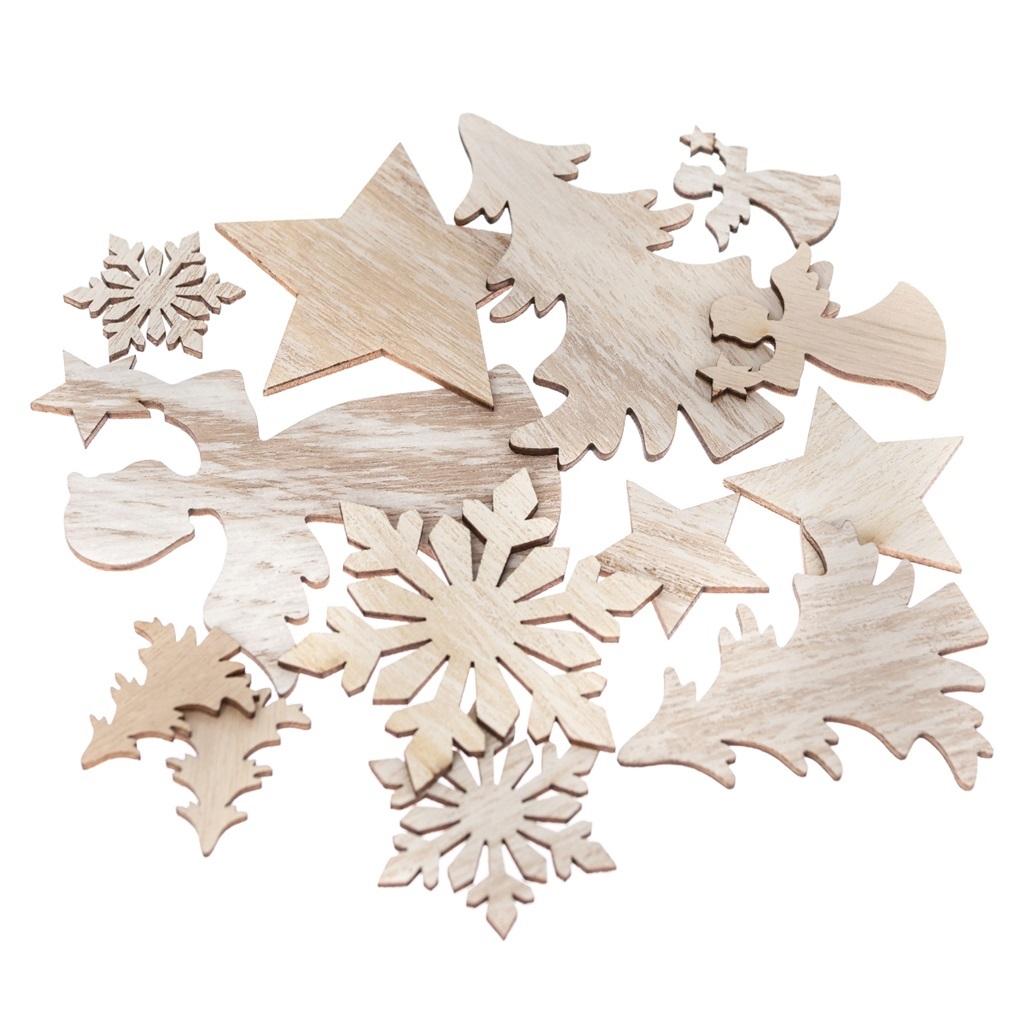 Opakowanie Drewniane motywy świąteczne bielone 12szt
