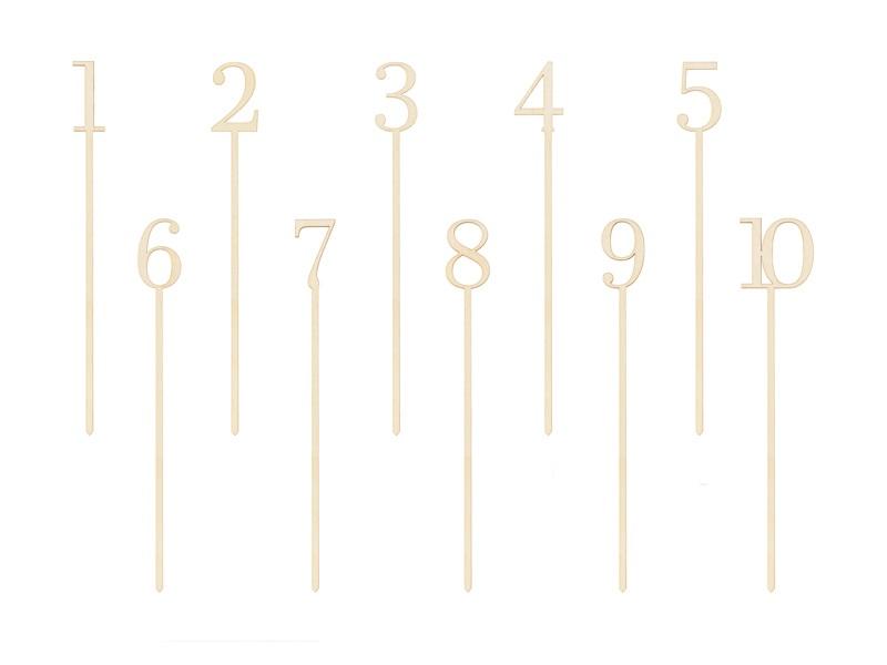 Drewniane numery na stół, zestaw zawiera numery od 1 do 10, wysokość ok. 25 cm.(1 op. / 10 szt.)