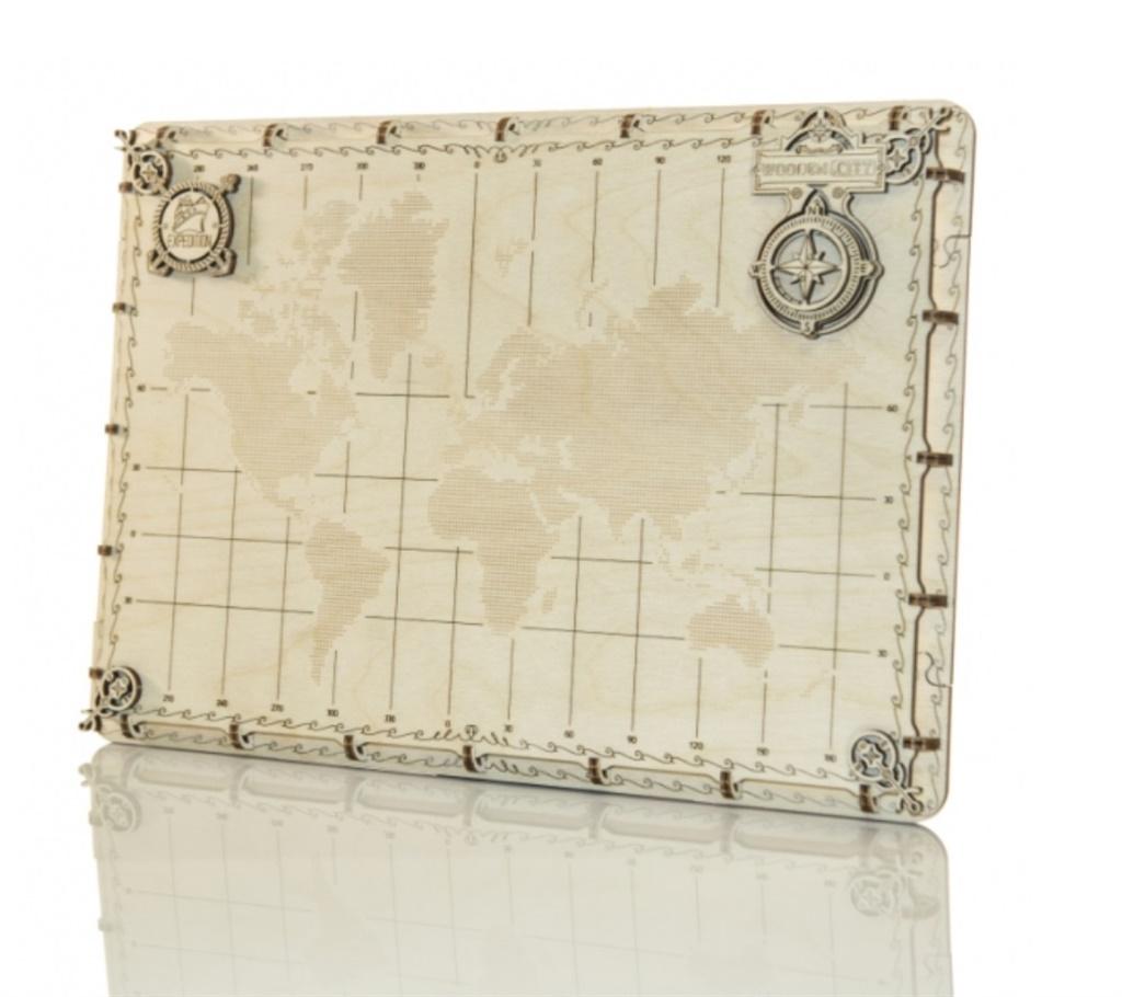 Puzzle 3D wykonane z ekologicznej sklejki. Mapa ekspedycyjna do włąsnoręcznego składania, idealna na powieszenie na ścianę. Zabawka nie wymaga użycia kleju.
