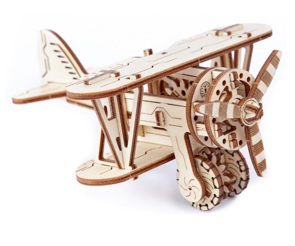 Puzzle 3D wykonane z ekologicznej sklejki. Model samolotu z ruchomymi elementami do własnoręcznego składania. Zabawka nie wymaga użycia kleju.