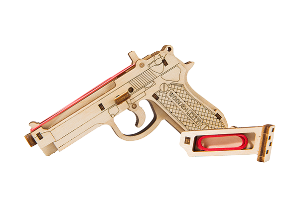 Legendarny pistolet BRT 9 – w naszym rewelacyjnym projekcie, przestawiamy Państwu zestaw 31 drewnianych elementów, które łącznie po złożeniu będą tworzyć legendarny pistolet BRT 9! – model.