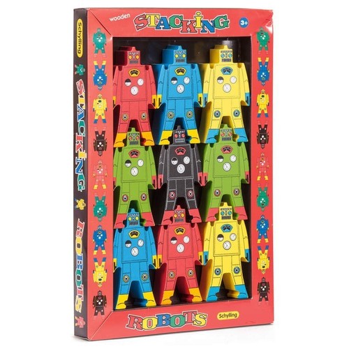 Opakowanie o wysokości 29cm zawiera w sobie 9 drewnianych robotów w różnych kolorach. W zestawie znajduje się jeden robot czarny, dwa zielone, dwa żółte, dwa czerwone oraz dwa niebieskie. Estetycznie wykonane roboty posiadają specjalne zaczepy, dzięki którym można je łączyć ze sobą modułowo. W efekcie zabawka pozwala na tworzenie fantazyjnych form przestrzennych, rozwijając tym samym dziecięcą wyobraźnię. Każda zabawka jest pięknie malowana i wykonana z wysokiej jakości drewna. Dla dzieci w wieku od 3 lat