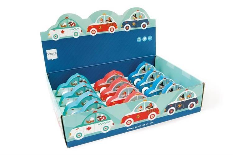 Dzięki zestawowi drewnianych samochodzików, w których znajdują się: wóz strażacki, policji, karetki i taksówki każdy może stać się wymarzonym bohaterem.