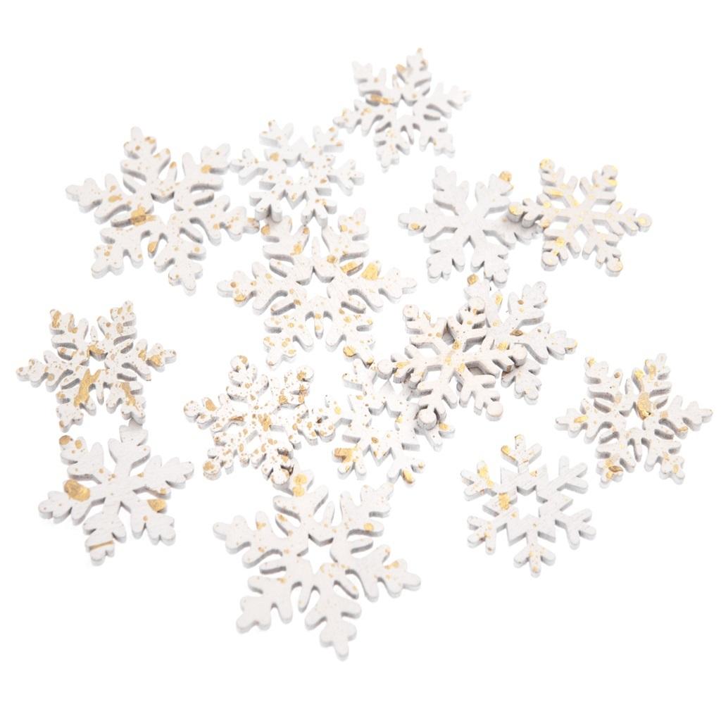 Opakowanie Drewniane śnieżynki białe złocone 15szt