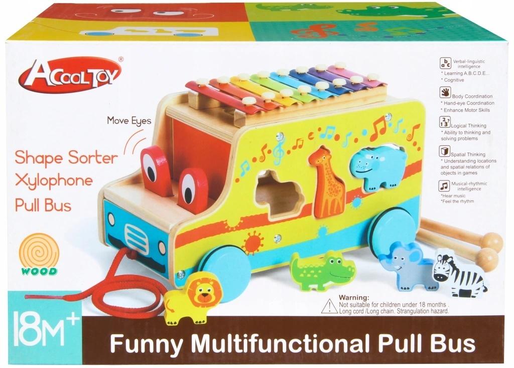 Funkcje: sorter, sorter ze zwierzątkami, cymbałki, ruchome oczy, sznurek do ciągnięcia