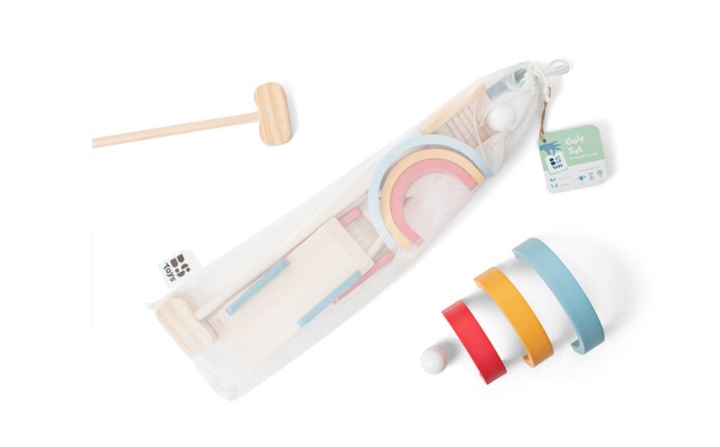 Drewniany zestaw do gry w golfa to idealny sposób na spędzanie aktywnie wolnego czasu, który ćwiczy koncentrację, refleks, zręczność i precyzję. Gra wykonana z najwyższej jakości drewna. Świetna zabawa dla całej rodziny. Łatwy do rozstawienia dołek pozwala na grę zarówno w ogrodzie jak i w domu. W skład drewnianego zestawu wchodzą: 2 kije do golfa 578 cm, 2 piłki O 3,5 cm, dołek 10x8x12,5 cm, 3 misy 1611 cm, mostek 208 cm, 2 przeszkody 810 cm Wymiar produktu: 60 x 10 x 10 cm, materiał: drewno.