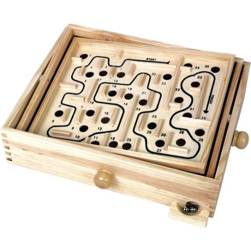 Drewniany labirynt - gra zręczniościowa Labirynt, w którym planszą steruje się za pomocą dwóch pokręteł. Porządny trening koordynacji dla dzieci lubiących zadania specjalne. Wiek 6+