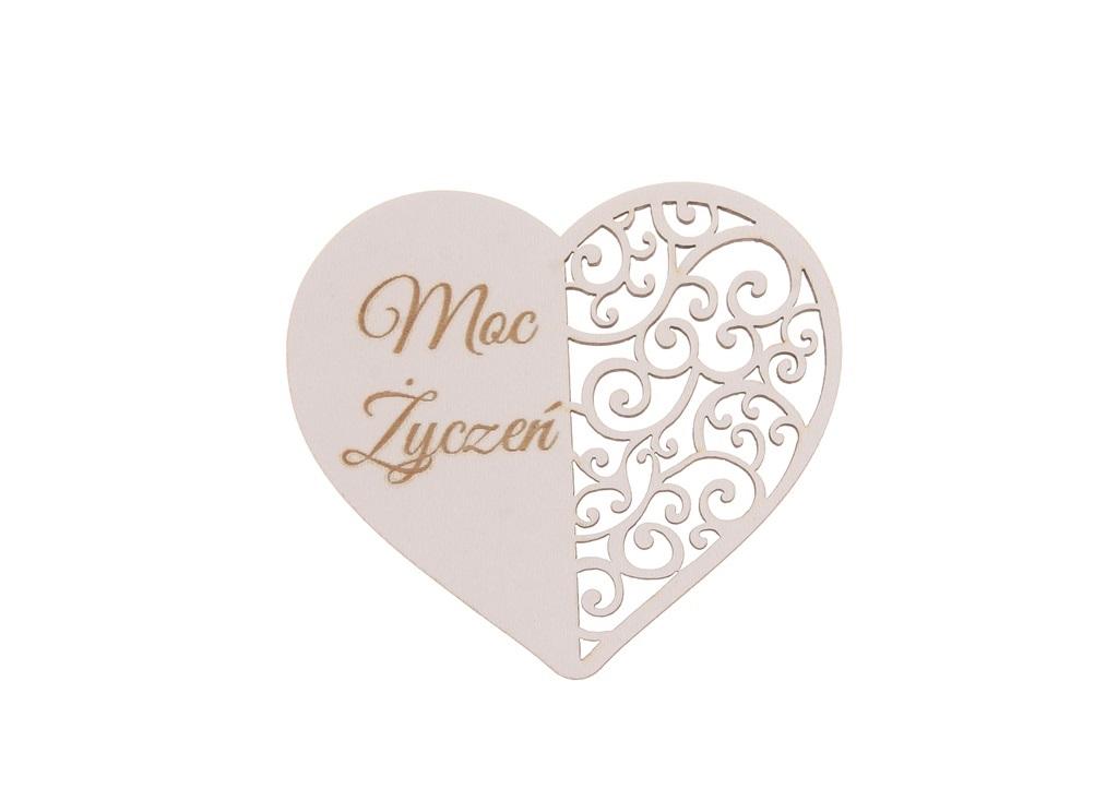 Drewniany napis (wzór na zdjęciu) wycięty precyzyjną techniką laserową z białej płyty HDF. Jego wykorzystanie zależy tylko od inwencji twórczej klienta, ma wiele zastosowań od tradycyjnych dekoracji florystycznych, przez ciekawe udekorowanie różnego rodzaju prezentów. Ten drobny dodatek podkreśli wyjątkowy charakter uroczystości lub będzie doskonałym akcentem na prezencie.