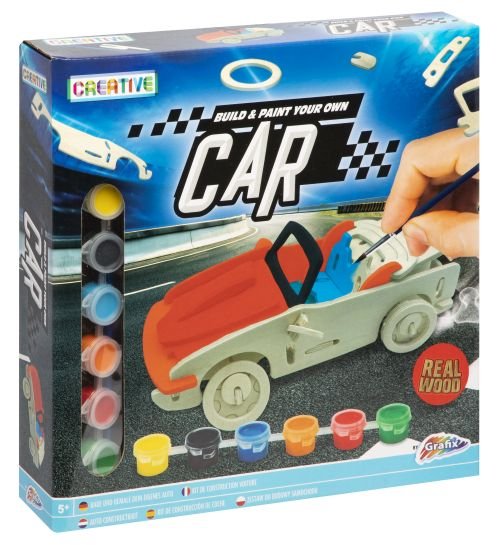 Drewniany samochód konstrukcyjny, w zestawie 6 farb i pędzelek. Wymiary opakowania: 26 cm x 5 cm x 26 cm. Pojazd do złożenia z drewnianych puzzli, efekt 3D. Drewniane elementy można zostawić surowe, bądź pomalować je załączonymi do zestawu farbami. W opakowaniu 6 kolorów farb i pędzelek. Stworzony własnoręcznie pojazd może posłużyć do zabawy lub posłużyć jako dekoracja kolekcjonerska. Przeznaczone dla dzieci powyżej 5 roku życia.