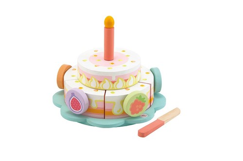 Drewniany zestaw z urodzinowym tortem składa się z 14 kolorowych elementów, które wspólnie tworzą niezwykły torcik. Podstawa posiada pięć fragmentów do których rzepami można przymocować ciasto. Aby je oddzielić, dzieci muszą udawać, że kroją je przy użyciu drewnianego nożyka. Zabawka rozwija motorykę oraz wyobraźnię. Sevi to produkty stworzone z drewna. Drewno zapewnia bardzo wysoką jakość, a prosta konstrukcja zabawek zapewnia wnosi walory edukacyjne, które w połączeniu z jasnymi pastelowymi kolorami przyciągają wzrok dziecka, zachęcając je do wspaniałej zabawy.