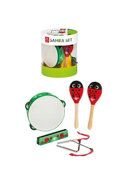 Instrumenty pozwalają dzieciom samodzielnego doświadczania muzyki. Wsłuchują się w głośność, tony i wytwarzany rytm. Muzyka to ważny punkt w rozwoju dzieci i warto dbać o niego od najmłodszych lat. W drewnianym zestawie DAL NEGRO znajdują się następujące instrumenty: