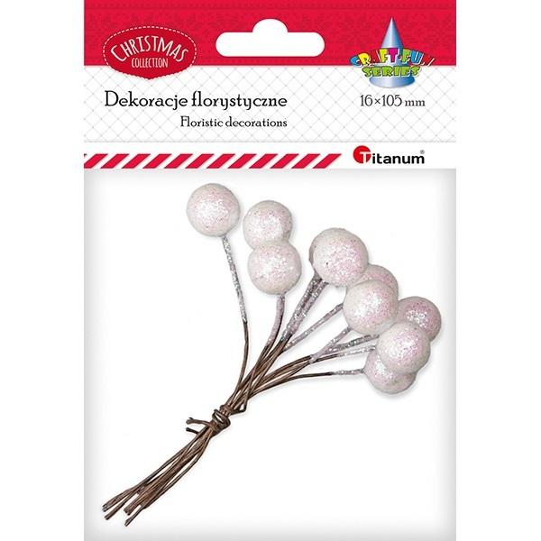 Opakowanie Drucik z kulką 15mm białą brokatową 10szt