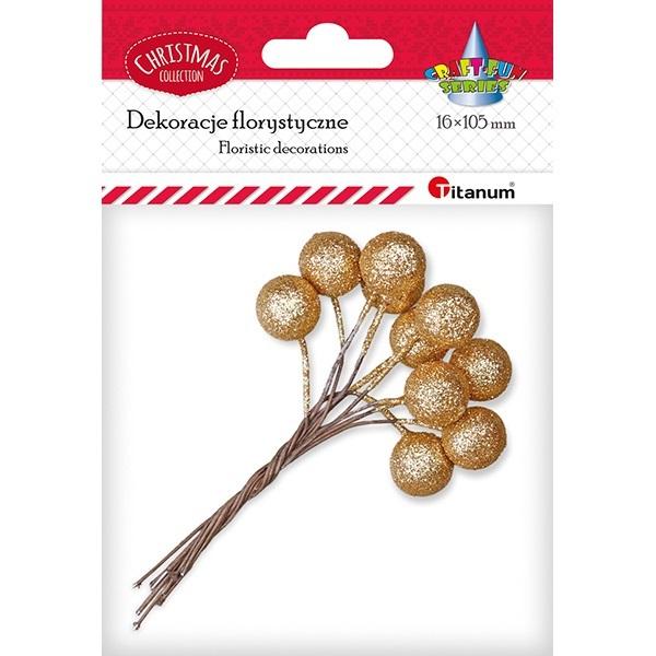 Opakowanie Drucik z kulką 15mm złotą brokatową 10szt