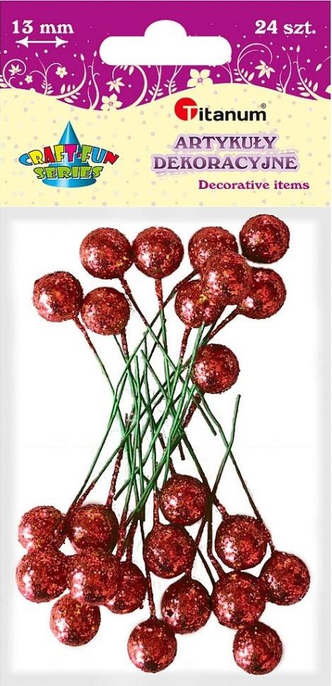 Opakowanie Drucik z kulką czerwona brokat 24szt