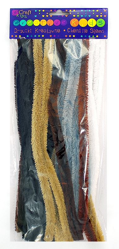 Grube, puszyste druciki kreatywne w naturalnych kolorach przypominających sierść zwierząt. Doskonałe do wszelkiego rodzaju dziecięcej aktywności twórczej. Niezwykle elastyczne, świetnie sprawdzają się podczas tworzenia postaci zwierząt oraz innych kreatywnych kształtów. Ilość w opakowaniu: 24 szt. Rozmiar: 1,5 cm x 30 cm