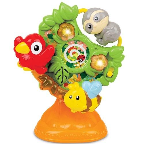 Na drzewku znajdują się zwierzaki, które wchodzą w interakcję z dzieckiem. Dotknij zwierzaka i popchnij drzewko, zabawka zrobi obrót i zakończy ruch spokojnym kołysaniem. Dodatkowo w drzewku jest grzechotka i i wesołe migające światełka.