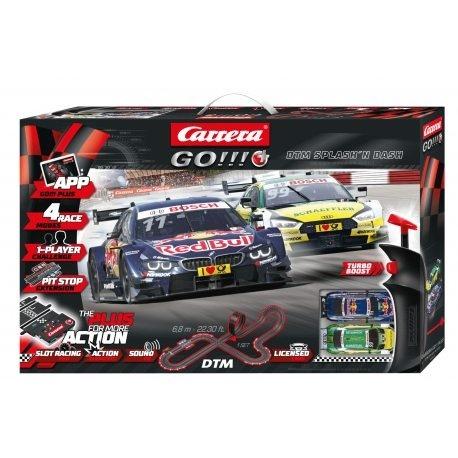 Na torze wyścigowym Carrera o długości 6,8 metrów trafiamy w sedno w nowym zestawie GO!!! Plus DTM Splash 'n dash z pętlą, prostymi i przelotami! Nikt inny niż sam mistrz świata Marco Wittmann może podjąć się wymagającego przejazdu swoim BMW M4 DTM. Pod maską samochodu wyścigowego utrzymanego w ramach Red Bull Design kryje się silnik BMW P66, który ma moc około 500 KM. Jego przeciwnik, Audi RS5 DTM, z niemieckim kierowcą Mikem Rockenfellerem, siedzi mu przy tym zawsze na ogonie. Również gra Pit-Stop z zadaniami zręcznościowymi na pit-stopie i wyjątkową szyną łączącą GO!!! Plus zapewni dodatkowe wyzwania. Niniejszy zestaw Carrera gwarantuje podniecający wyścig ekstraklasy!