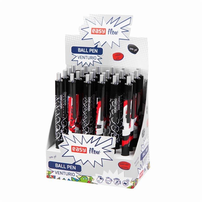 Długopis automatyczny, kolor niebieski. Końcówka 0,7mm. Opakowanie zawiera 24 sztuki, różne wzory.