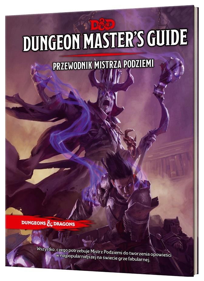 Dungeon Master's Guide (Przewodnik Mistrza Podziemi) zapewnia inspirację i porady, dzięki którym rozbudzisz swoją wyobraźnię i stworzysz dla swoich graczy fascynujące światy pełne przygód i eksploracji. Wewnątrz książki znajdziesz sugestie i wskazówki dotyczące budowania światów oraz tworzenia niezapomnianych przygód, opcjonalne zasady gry, setki klasycznych magicznych przedmiotów i wiele innych narzędzi przydatnych Mistrzowi Podziemi.