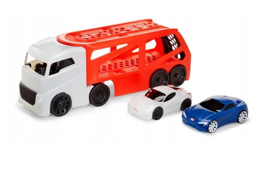 Duża Ciężarówka Laweta z 2 samochodami 646669 to idealna zabawka dla najmłodszych kierowców. Sporych rozmiarów pojazd wyposażono w naczepę, która może transportować, dołączone do zestawu dwa sportowe samochody. Szara kabina ciężarówki ma opływowy, masywny kształt. Rampa w kolorze czerwonym z opuszczanym wjazdem, z pewnością przyniesie wiele radości podczas zabawy. Samochody Little Tikes nadają się do zabawy zarówno w pomieszczeniach, jak i na dworze.