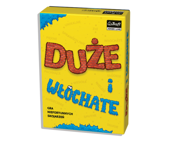 A Tobie z czym kojarzy się „duże i włochate”? Jakie skojarzenie wywołuje „twarde i spiczaste”? Duże i włochate to imprezowa gra skojarzeń, która rozbawi Cię do łez! Dobierz słowa i przekonaj innych, że Twoje skojarzenia są najtrafniejsze, najzabawniejsze i najlepsze! Pójdź na całość i przekonaj innych do swoich szalonych, śmiałych skojarzeń! Lepkie i pikantne? Lodowate i wybuchowe? Puść wodze fantazji! W grze Duże i włochate możesz wykazać się nie tylko niebywałą pomysłowością, ale i siłą perswazji! Duże i włochate to gra imprezowa pełna (nie)fortunnych skojarzeń.
