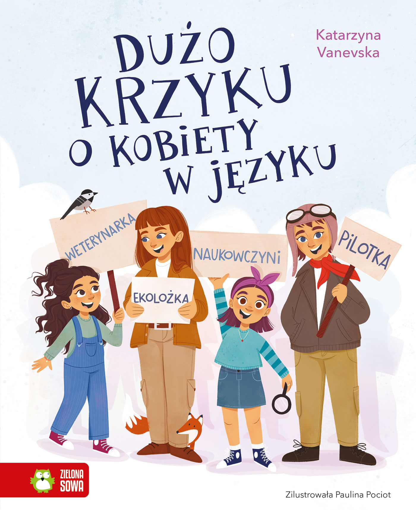 Nikt się nie dziwi nazwom kolorów, nazwom emocji, kształtów czy rzeczy, ale dziewczyńskich określeń wiele wciąż kogoś dziwi, nikt nie zaprzeczy! Dobrze jest jasno wyrażać myśli, zatem nie róbmy już więcej krzyku o to, czy warto, o to, czy można… o miejsce kobiet w polskim języku. Fizyczka, pilotka, szpiegini, paleontolożka… Poznajcie wspaniałe kobiety, mądre i odważne, które niezwykłymi osiągnięciami zadziwiły świat! To one otworzyły drzwi swoim koleżankom, córkom i wnuczkom do realizacji pasji i marzeń. Ta wyjątkowa książka łączy wesołą poezję z ciekawą prozą, aby w przystępny i pełen humoru sposób wyjaśnić dzieciom, czym są feminatywy. Każdy zabawny wierszyk przedstawia inny zawód wykonywany przez kobietę i podpowiada, jak poprawnie (i bez obaw!) używać jego żeńskiej formy w codziennym języku.