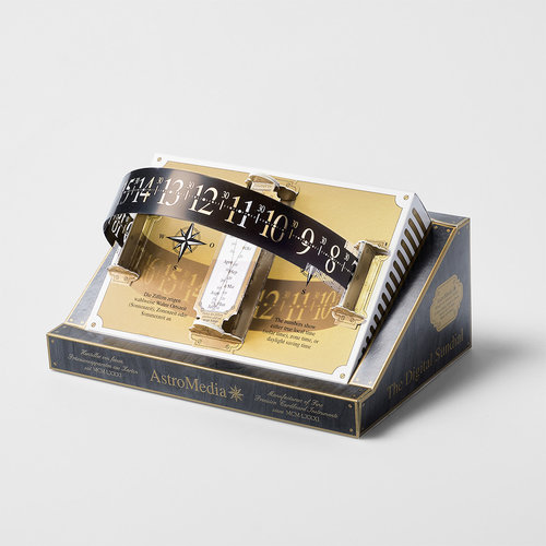 Jak działa Cyfrowy Zegar Słoneczny: Ten zegar typu równikowego, pokazuje czas za pomocą cyfr rzucanych na powierzchnie cyferblatu przez przechodzące przez odpowiednio rozmieszczone otwory słońce. Uchylny korpus zapewnia dostosowanie zegara do różnych szerokości geograficznych, obrotowy cyferblat z naniesionym wykresem analemmy umożliwia odczyt czasu z dokładnością rzędu 5 minut, a ruchomy pasek godzin pozwala na odczyt czasu urzędowego dla Twojej miejscowości w wersji letniej i zimowej! Zegar jest doskonałym pretekstem do poznania podstawowych pojęć związanych z czasem. Opis: Zestaw z lakierowanego na złoto-czarno kartonu do budowy eleganckiego zegara słonecznego. Kartonowe elementy są wstępnie wycięte przez sztancowanie co pozwala na ich wyjęcie bez wycinania. Możliwość dostosowania do wszystkich lokalizacji pomiędzy Oslo i Kairem. Wymiary po złożeniu: 19 x 12 x 16 cm Zawartość zestawu: 4 arkusze lakierowanego kartonu zawierające elementy do budowy zegara Sztancowanie pozwala na wyjęcie elementów bez konieczności wycinania 1 perforowany pasek godzin polskojęzyczna instrukcja