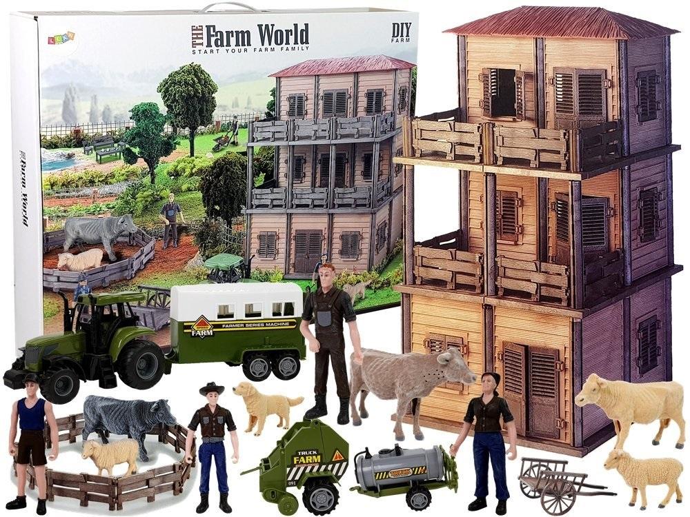 Duży Zestaw Do Złożenia Farma Traktor Zwierzęta Zagroda DIY Zrób to sam, możesz stworzyć farmę! Z tym zestawem konstrukcyjnym masz wszystkie elementy, by zbudować farmę z płotem, stodołą i siedzeniami. Będziesz musiał zebrać swoje zwierzęta i narzędzia pracy. Farma dostarczy dzieciom więcej zabawy i rozrywki. Maluch zobaczy jak wygląda życie na wsi, jakie zwierzęta się w nim znajdują np. owca, krówka. Podczas układania dziecko ćwiczy precyzję i zdolności manualne, działa wyobraźnia, polepsza się pamięć i koncentracja. Dużo plusów i super zabawa! Traktor dołączony do zestawu posiada napęd frykcyjny, wystarczy pociągnąć do tyłu i puścić, obserwować jak porusza się w przód. Przyczepa do przewozu zwierząt pozwoli na przewożenie zwierząt z miejsca na miejsce. W czasie przerwy od pracy można odpocząć przy stole z krzesłami, akcesoria z jedzeniem i naczyniami, umożliwią one wielką ucztę. Wielkość zagrody dla zwierząt wyłącznie zależy od Ciebie i tego co zdecydujesz zbudować. Elementy zestawu: - elementy do budowy domu - elementy do budowy zagroda - ławka, krzesła - stół, - taczka - łóżko - sztućce, miski - atrapy jedzenia - 4 figurki osób - zwierzęta domowe: pies, owieczki, krówka - traktor - przyrządy: przyczepa do przewozu, opryskiwacz do nawozu, maszyna do robienia beli - instrukcja złożenia Wysokość domku: około 30 cm Wymiary traktora: 16 cm x 9 cm x 10 cm Wymiary przyczepy: 18 cm x 8,5 cm x 11 cm Wymiary figurek: około 11 cm x 8 cm x 3 cm Wymiary opakowania: 59 cm x 50 cm x 11 cm Wszelkie figurki wchodzące w skład zestawu wykonane są z bezpiecznego i atestowanego materiału. Ze względu na wymiary elementów wchodzących w skład zestawu, zabawka przeznaczona jest dla dzieci powyżej 3. roku życia. Zabawka jest zgodna z normą EN71, co odpowiada za bezpieczeństwo płynące z jej użytkowania.