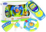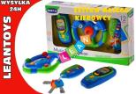 INTERAKTYWNY ZESTAW DLA MAŁEGO KIEROWCY !! 3 GRAJĄCO-ŚWIECĄCE ELEMENTY KIEROWNICA + TELEFON + KLUCZE Z PILOTEM !! Od zawsze wiadomo, iż dzieci najbardziej lubią bawić się zabawkami dorosłych typu kluczyki od samochodu, pilot od telewizora czy właśnie telefon komórkowy. Dlatego proponujemy Państwu ten rewelacyjny zestaw dla Państwa maleństwa, aby komórka, kluczyki Państwa ocalała przed pierwszym ząbkowaniem : ) Cały czas tym dźwiękom towarzyszy migające niebieskie światełko. PILOT Z KLUCZAMI- efektowny pilot posiada 3 klucze. Na pilocie znajduje się 5 przycisków, pod którymi kryją się przeróżne efekty dźwiękowe. - przycisk z KŁÓDKĄ wydaje odgłos uaktywniania alarmu w samochodzie, - przycisk z AUTKIEM wydaje odgłos odpalania samochodu, - przycisk z GŁOŚNIKEIM wydaje odgłos klaksonu, - przycisk z DZWONKIEM wydaje odgłos dzwonka do drzwi, - przycisk z NUTKAMI uruchamia wesołe melodyjki. Zestaw bardzo efektownie i estetycznie wykonany, zapewne zachwyci każdego młodego kierowcę. Wymiar kierownicy - średnica ok. 18 cm Wymiar telefonu - 15,5 cm x 6 cm x 3,5 cm Wymiar pilota - 11 cm x 6 cm