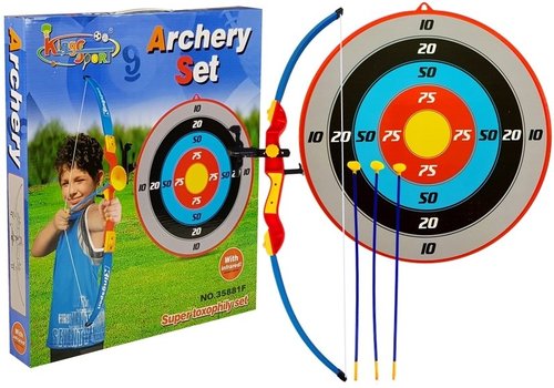 Łuk sportowy dla dzieci + strzały Łucznictwo to wspaniała dziedzina sportowa dla dzieci. Prezentowany przez nas sprzęt swym wyglądem i wykonaniem nawiązuje do prawdziwych łuków, co może pozytywnie wpływać na odczucia dzieciaka, zachęcając go do świetnej zabawy. Zestaw został wykonany z dbałością o każdy detal, a jego projekt dostosowano do wielkości dłoni młodych łuczników. Do produkcji łuku i pozostałych elementów wchodzących w skład zestawu wykorzystano bezpieczne dla dzieci i atestowane materiały. Żywe kolory i mocna konstrukcja łuku z pewnością zachęcą do podjęcia wyzwania, jakim jest trafienie w sam środek tarczy. Zestaw dla małego łucznika składa się z: - łuku sportowego, - 3 strzał, - tarczy. Zabawkowy łuk jest idealną zabawką na wiosenne i letnie ciepłe dni, podczas których maluch może do upadłego bawić się na świeżym powietrzu. Jednak nie tylko! We wnętrzu opakowania znajduje się tarcza, która może stanowić cel do strzałów. Tarczę można zawiesić lub przyczepić do ściany, a następnie... rozpocząć zabawę. Przyssawki znajdujące się na zakończeniach strzał są bezpiecznie i z łatwością przykleją się do gładkiej powierzchni, nie pozostawiając na niej żadnych śladów. Sportowy łuk będzie świetną rozrywką dla dzieci, które marzą o tym, by wcielić się w rolę łucznika, na przykład Robin Hooda czy Indianina — ograniczeniem w wyborze postaci i scenerii zabawy jest tylko wyobraźnia Twojej pociechy. Zestaw sprawdzi się również podczas kompletowania stroju na przebierane urodziny kolegi bądź bal karnawałowy. Co istotne, komplet łuku i strzał bardzo pozytywnie wpłynie na rozwój dziecka. Zabawa ta zachęci dziecko do wysiłku fizycznego, rozwinie sprawność manualną i koordynację ruchową. Radość płynąca z zabawy rozwinie cierpliwość, celność i refleks dziecka. Wymiary elementów zestawu: - tarcza : 41cm cm, - strzały: 57 cm, Wymiary opakowania zestawu dla łucznika: - 42 cm x 46 cm x 5,5 cm.