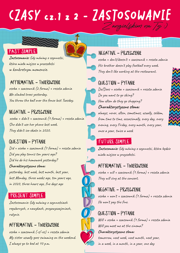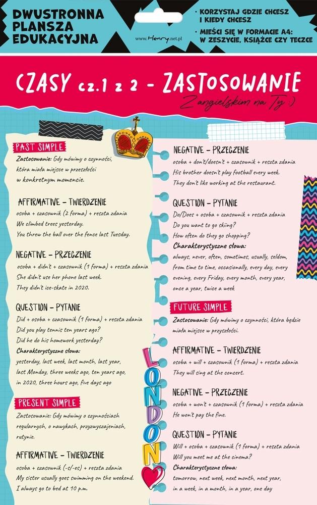 Dwustronna plansza/ściąga A4 J. ang. czasy cz.1