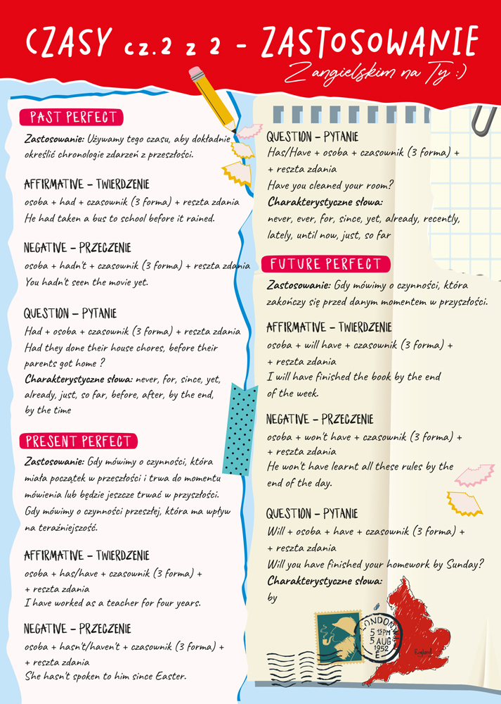 Opakowanie Dwustronna plansza/ściąga A4 J. ang. czasy cz.2