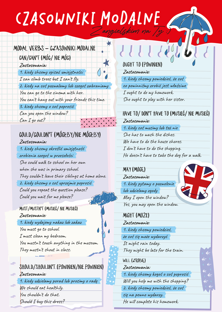 Dwustronna plansza/ściąga A4 J. ang. modalne