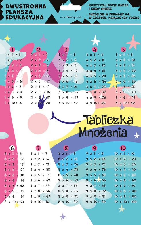 Opakowanie Dwustronna plansza/ściąga A4 Jednorożec