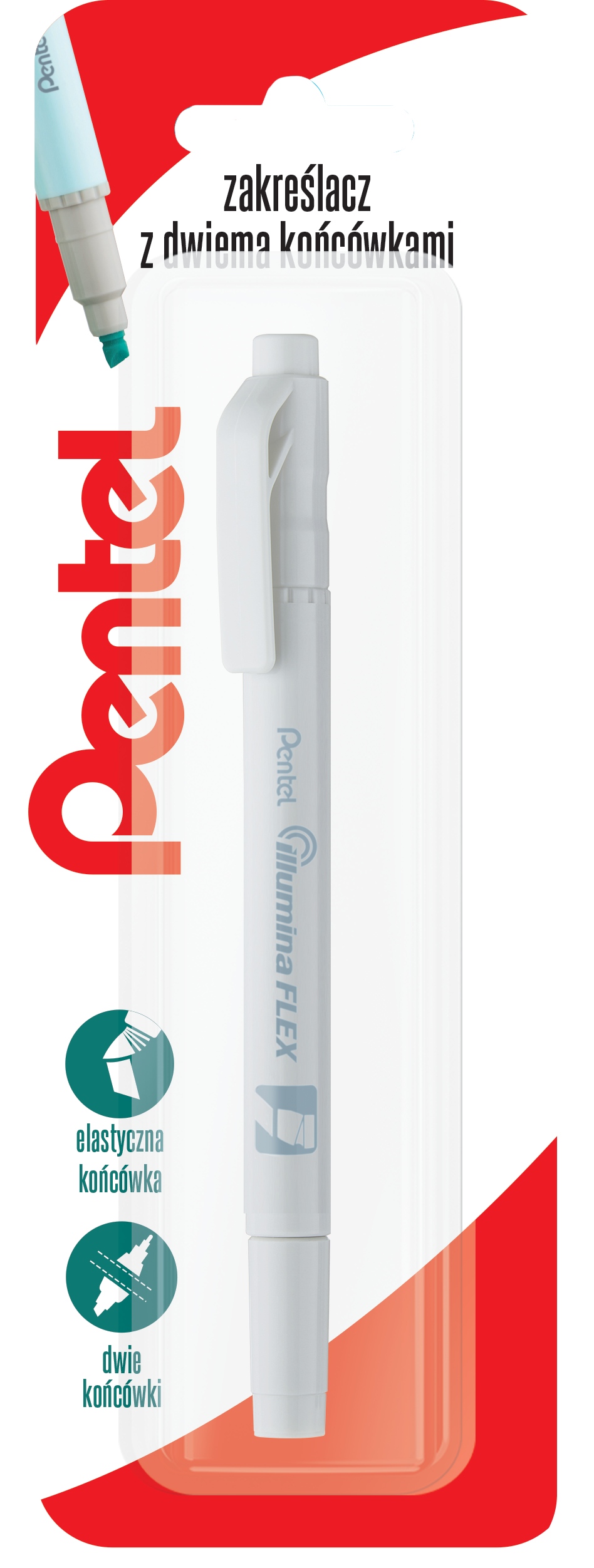 Dwustronny zakreślacz w pastelowych kolorach. Ścięta końcówka ugina się, aby elastycznie dopasować się do papieru, dzięki czemu linie są proste i czyste. Pastelowy szary. Pakowany na blistrze x 1 sztuka.