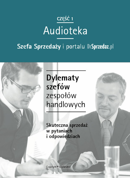 Magazyn Szef Sprzedaży i portal DrSprzedaz.pl prezentują: Dylematy szefów zespołów handlowych - skuteczna sprzedaż w pytaniach i odpowiedziach. Zarządzasz zespołem handlowym? Ilu z Twoich podwładnych wie jak skutecznie sprzedawać? Stać Cię na utratę klientów spowodowaną lekceważącym podejściem Twoich przedstawicieli? W Twoim zespole tkwi potencjał ale potrzebna jest motywacja? Czujesz potrzebę fachowego wsparcia aby dokonać zmian? Jeżeli odpowiedziałeś twierdząco przynajmmniej na jedno z powyższych pytań to nasza Audioteka jest kierowana właśnie do Ciebie! Dobrze wiesz, że bez efektywnego zespołu nie ma skutecznej sprzedaży, a co za tym idzie nie ma szans na zrealizowanie napiętych planów sprzedażowych. Podpowiemy Ci jak wyciągnąć z Twoich pracowników to, co w nich najlepsze, jak reagować na działania handlowców niezgodne z Twoimi założeniami, jak zbudować efektywny, zintegrowany zespół na miarę Twoich potrzeb. Czas to pieniądz! "Efektywne wykorzystanie czasu to jeden z sekretów najskuteczniejszych handlowców. Dlatego, jeżeli spędzasz czas na podróżach do klientów, ten audiobook na pewno przypadnie Ci do gustu. Esencja najlepszych porad ekspertów sprzedaży, którzy dzielą się praktycznymi rozwiązaniami zwiększającymi Twoje wyniki. Plus, dwie porady specjalnie ode mnie, a wszystko to, by pomóc Ci napędzać sprzedaż w każdej wolnej chwili!" [Izabela Krejca-Pawski] Audioteka to 80 minut skutecznych porad dla zarządzających zespołami handlowymi oraz dla wszystkich, którzy na co dzień zajmują się sprzedażą. Prezentujemy praktyczne case study z życia działów handlowych. Te zagadnienia dotyczą również Ciebie, dlatego nie rozwiązuj problemów na oślep. Oszczędź sobie czasu, korzystając z doświadczeń innych, a jego nadmiar przełóż na prezentację wartości swoich produktów! Zawartość audiobooka: Jak zarządzać handlowcem, który sam był kiedyś menedżerem? Jak zarządzać sprzedawcami-kolegami? Jak obniżyć prowizje? Jak zwiększyć liczbę sfinalizowanych transakcji? O co pytać kandydatów szukając gwiazd sprzedaży? To tylko niektóre z zagadnień, na które mamy gotowe odpowiedzi. Wzbudziliśmy Twoją ciekawość? Zatem, zamów już teraz!