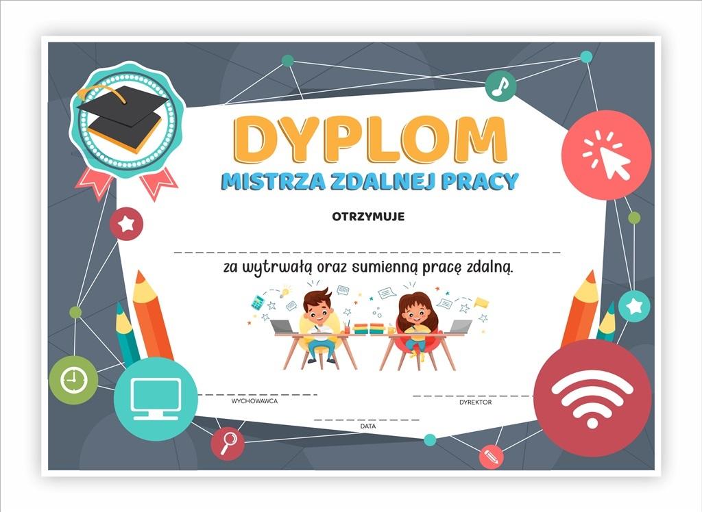 Dyplom mistrza pracy zdalnej idealnie sprawdzi się jako pamiątka oraz nagroda za ten wyjątkowy rok szkolny odbyty online!