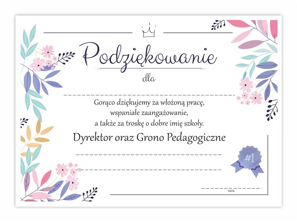 Dyplom z podziękowaniami idealnie sprawdzi się jako upominek od Dyrekcji oraz Grona Pedagogicznego.