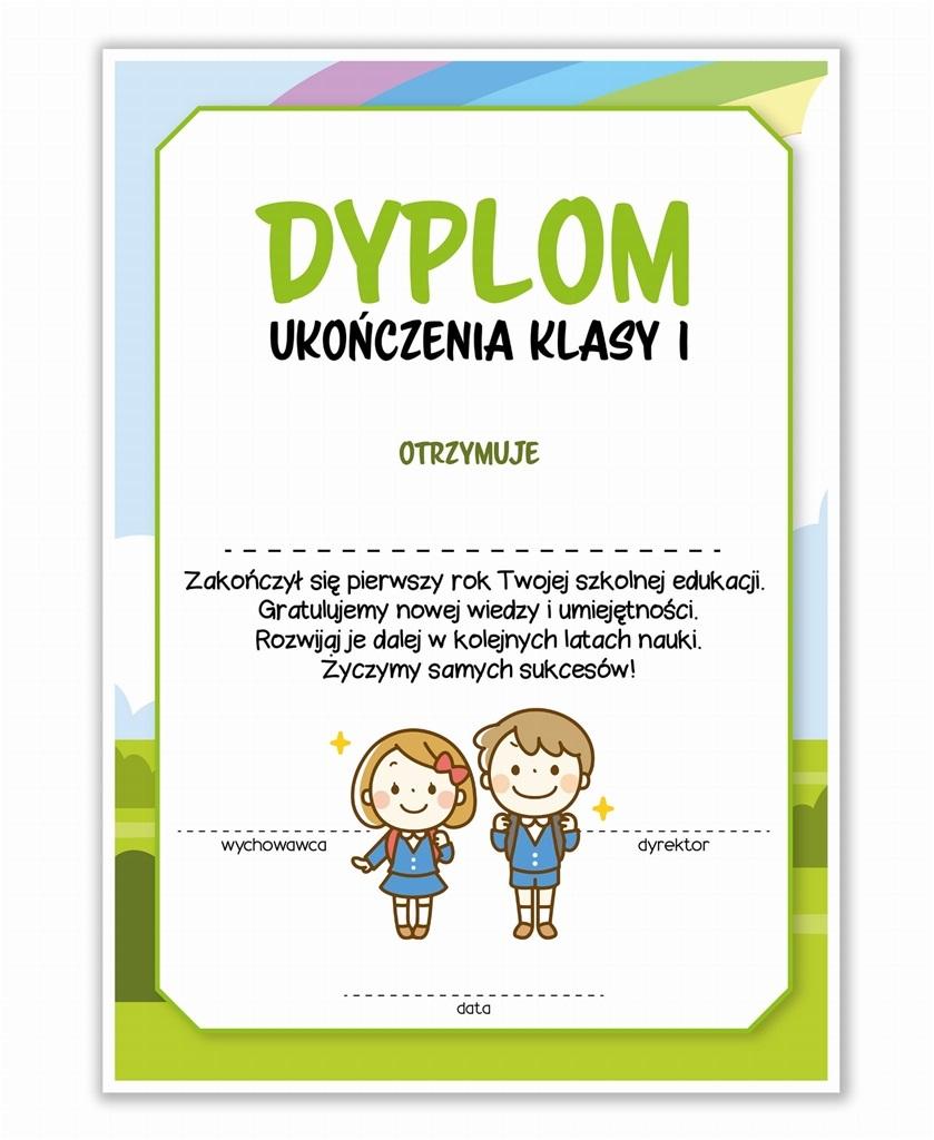 Dyplom na zakończenie klasy pierwszej będzie wspaniałą pamiątką dla dziecka.