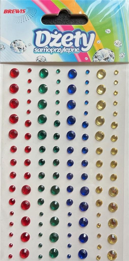 Dżety samoprzylepne rozmiar: mix ilość: 120 szt kolor: czerwony, niebieski, zielony, złoty