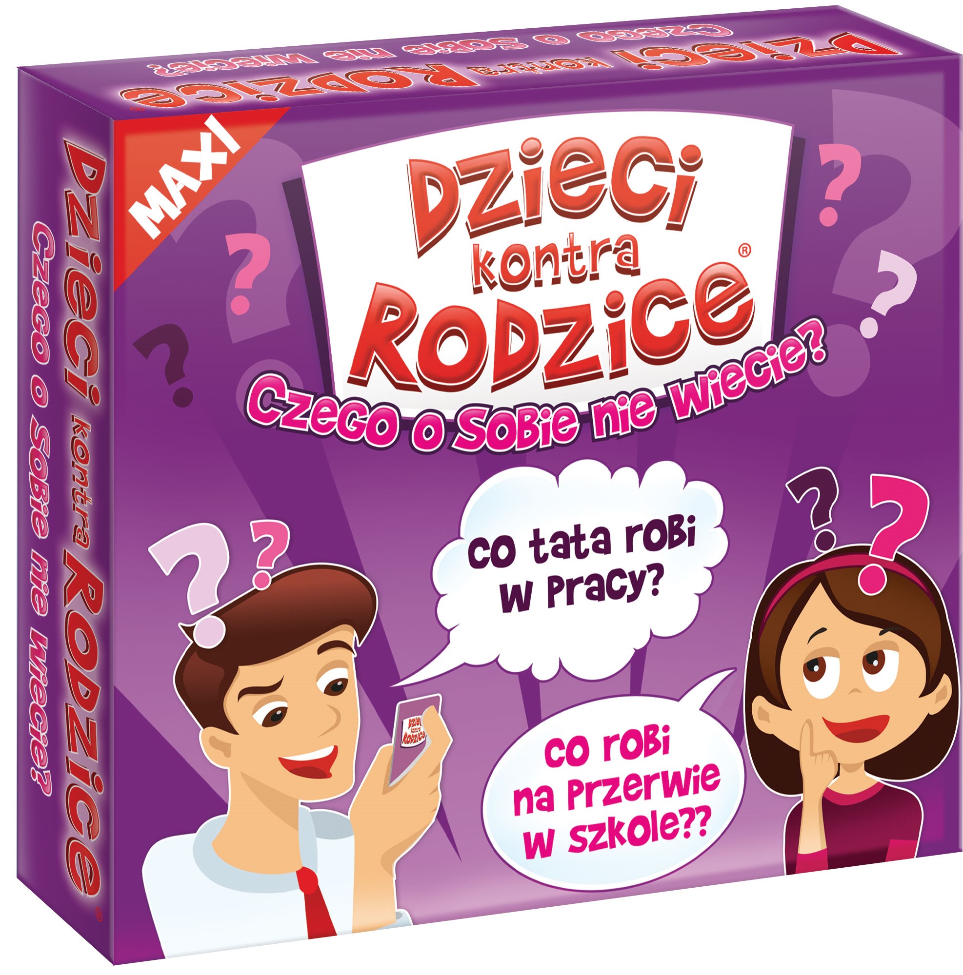 Wiek: 6+ Jak dobrze rodzice znają dzieci, a jak dobrze dzieci znają rodziców. Dynamiczna gra rodzinna, w której dzieci i rodzice rywalizują odpowiadając na wiele zabawnych i ciekawych pytań dotyczących ich codziennego życia. Dowiadują się przy tym nieznanych i zaskakujących rzeczy o sobie nawzajem. Wygrywa drużyna, która odpowie na więcej pytań. W grze znajdują się dwa zestawy pytań, specjalnie opracowane dla dzieci i dla rodziców. Dodatkowo znajdziecie duża i estetyczna planszę, 14 żetonów Dobry Uczynek, zestaw kostki i pionków. Zawartość: plansza, kostka, pionki, 14 żetonów, 216 pytań, 54 kart, instrukcja